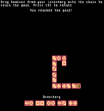 Drag Dominos from your inventory onto the chain to reach the goal. Press [R] to rotate.